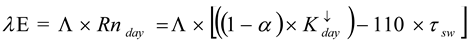 The latent heat flux was calculated based on Λ, multiplied by the diurnal net radiation at earth surface (Rnday) that is itself retrieved spatially from the surface broadband Αlbedo (α) and the single-way transmissivity of the atmosphere (τsw).
