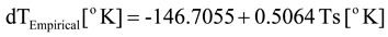 Three alternative equations relating surface temperature (Ts) to the air to surface temperature difference (dT).