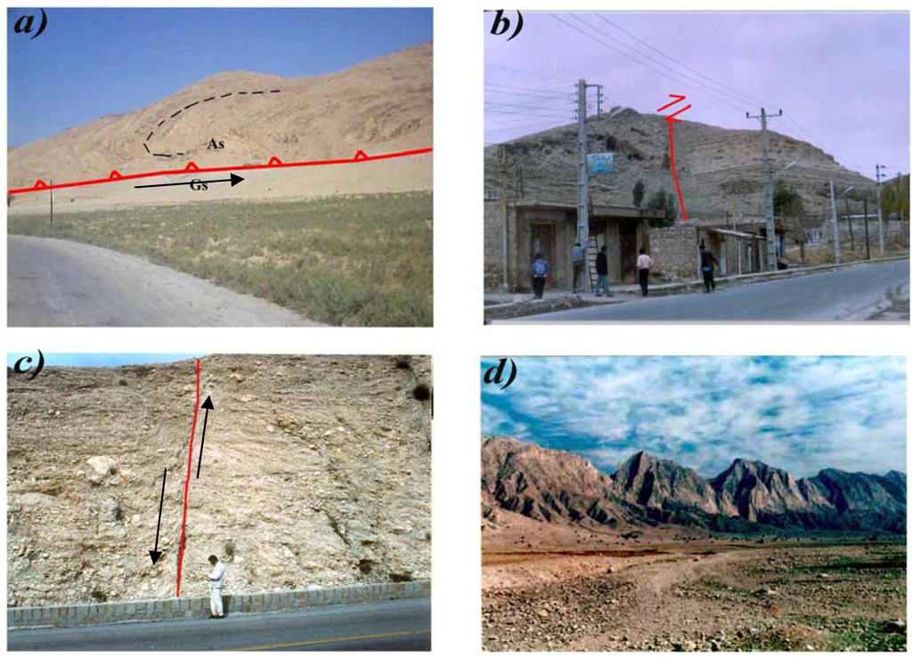 - Baker, C.; Jackson, J.; Priestley, K. Earthquakes on the Kazerun Line in the Zagros Mountains of Iran: strike-slip faulting within a fold and thrust belt. Geophys. J. Int. 1993, 115, 41–61. [Google Scholar] [CrossRef]