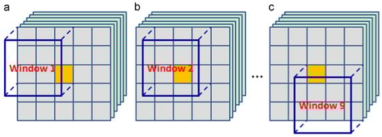 Multiple local window filters [] (a) Window 1. (b) Window 2 and (c) Window 9.