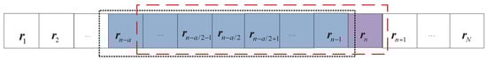 Figure 2 shows the causal sliding array window at depicted by dotted lines and the causal sliding array window at depicted by dashed lines, where a is the array window size. The farthest pixel from in the causal sliding array window at is removed from the causal sliding array window at , while the most recent data sample vector is added to the causal sliding array window at .