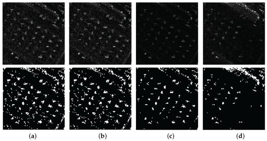- Otsu, N. A Threshold Selection Method from Gray-Level Histograms. IEEE Trans. Syst. Man Cybern. 1979, 9, 62–66. [Google Scholar] [CrossRef]