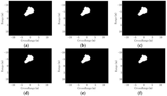 Figure 9 shows the distorted shadows after the erosion operations. The region and contour distribution vary under different structuring elements. In comparison, the Segment-SRC is tested under deformations of the target region, which are also obtained by eroding the segmented target region using the structuring elements in Equation (6). Table 10 displays the PCCs of the proposed method and Segment-SRC under different extents of segmentation errors. The distortion of the target region will cause a big loss to the target backscattering. As a result, the performance of Segment-SRC sharply decreases. The results indicate that the recognition methods performed on the target regions are notably sensitive to the segmentation errors. For the proposed method, the shadow distortion hardly degrades the performance. On the one hand, the shadow is not classified for recognition, so the shadow segmentation errors are not directly passed to the recognition results. On the other hand, according to the generation of information-decoupled representations, when the extracted shadow can cover most of the truth, the target image can be properly constructed. As shown in Figure 8, most of the true shadow region is maintained in the erosion results. Therefore, the generated target image can continue to work with high effectiveness for the target recognition.