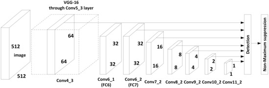 Our airplane detection framework is based on SSD, which is a single convolutional neural network that incorporates feature maps from different layers with fast detection speed and high accuracy. These advantages are suitable for our application scenarios. The first few layers are standard architectures for image classification and were commonly used in the object detection framework, which is also called the base network. We use the VGG16 for the base network. The VGG16′s design philosophy is easy to understand and suited for fine tuning, which is also the base network that most researchers use for object detection experiments comparison. After the base network, an additional secondary network structure is added, which replaces the fully-connected network behind the VGG16 and continues adding convolutional layers.