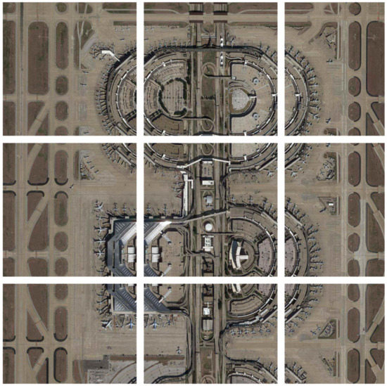 We did much data labeling work for training and testing. The data is collected from satellite images of the world’s top 30 airports in Google Earth, such as Hartsfield-Jackson Atlanta International Airport (United States), Beijing Capital International Airport (China), and other airports. Most of them are city airports; the resolutions of airports may be different, ranging from 0.98 m to 10 m, and the frame size is between and . Fifteen of these airports were randomly selected as training and validation data for the convolutional neural networks, and the remaining 15 airports were a test set. At such a resolution, a complete satellite image of the airport is more than in size, which is obviously not suitable for display. We crop the image into slices due to training and testing needs; the size of these slices is to . The final data distribution is shown in the Table 1.