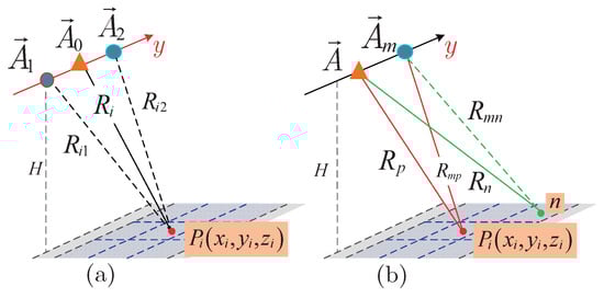 Furthermore, when the platform runs along a straight trajectory (i.e., ), Equation (9) can be simplified as: