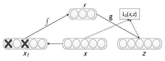 In Figure 3, is the initial input data, is the corrupted input data, is the new feature obtained by encoding , and is the output obtained by decoding . The reconstruction error is
