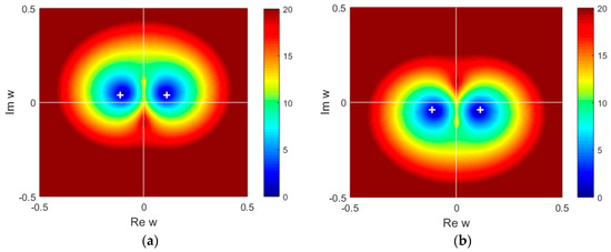 Here, , , , and . The amplitude can be found from the excitation condition with a localized source . The differentiation of Equations (17) and (18) yields: