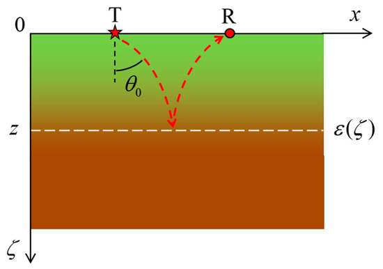 Electromagnetic scattering problems involving media with one-dimensional (1D) variation of the electromagnetic properties have been widely studied in the literature and still are of high interest [11,12,13,14,15,16]. Approaches for the solution of such problems find application not only in the GPR field: they are important for the interpretation of data measured with other electromagnetic non-destructive testing methods as well, such as Time Domain Reflectometry (TDR) for moisture evaluation and material analysis [17,18].