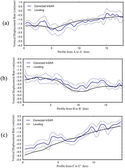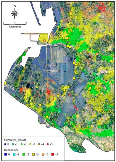 5.2. Correcting the InSAR Result Using Rates from Leveling