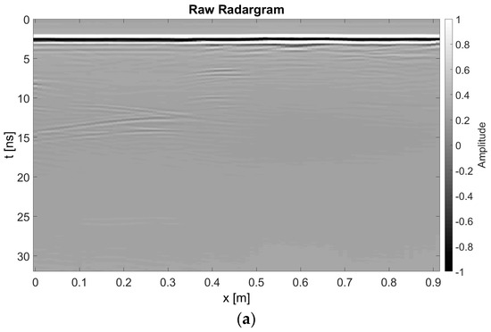 However, despite this widespread use, GPR effectiveness depends significantly on the users’ ability to interpret the obtained images, i.e., the radargrams. Indeed, a radargram provides a distorted image of the scenario under test, which can lead to incorrect readings of the information gathered. As a consequence, there is a continuing interest in the development and use of application-oriented data-processing approaches capable of providing easily interpretable images [2,3,4,6,13,14,15,16,17,18,19].