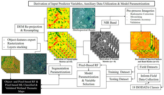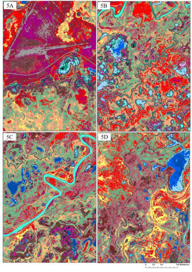 Thus, in our field-based analyses of a large wetland system in Siberian Russia with nearly 20 different structural and vegetative habitat and wetland classes, we sought analyze the differences in overall accuracy when comparing between three classification methods (pixel-based ML and RF, and object-based RF), constraining our analyses to use the same input field and remote-sensing datasets. The outcome of this study, therefore, assists end-users in selecting (and parameterizing) the proper classifier to analyze the structure of the world’s imperiled and complex wetlands.