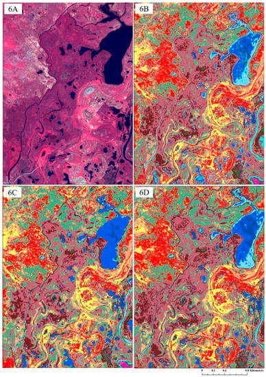 Wetlands in particular can be challenging landscape elements to classify due to their ecotonal location at the terrestrial–aquatic interface and complex hydroperiod and hydro-patterning which control the vegetation structures found therein. However, their importance in contributing to landscape hydrological, biogeochemical, and habitat functions and massive wetland losses worldwide [2,3] make assessing the location and structure of wetland systems a critical research need. With the beguiling and varied approaches to classifying wetland systems, in this study we sought to determine if pixel-based or objected-based approaches performed most satisfactorily in an analysis and classification of the lower Barguzin River Valley, a large wetland study area draining into Lake Baikal, a United Nations Educational, Scientific, and Cultural (“UNESCO”) World Heritage Site located in Siberian Russia. We furthermore compared the efficacy of parametric (ISODATA, ML) and non-parametric (RF) approaches and iteratively analyzed outputs with spatial and spectral classification metrics seeking a parsimonious and effective wetland classification solution. Thus, in addition to accurately classifying the wetland landscape to improve management options, we aimed to provide an assessment and recommendation of methodological approaches for consideration specific to classifying wetland landscapes.