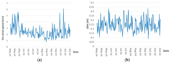 - Martano, P. Estimation of surface roughness length and displacement height from single-level sonic anemometer data. J. Appl. Meteorol. 2000, 39, 708–715. [Google Scholar] [CrossRef]