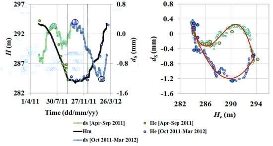 5.3. Comparison between Displacements and Water Levels