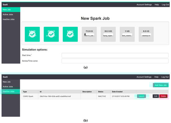 15] to handle user interaction. At the high level, the user will submit their deadline requirements, with configuration and input files, to the SparkCloud user interface (SparkJobUI). SparkCloud’s different components will interact with each other to run Spark with the given configuration—using the best possible execution plan for the Spark application to satisfy the user’s requirements. After the completion of the simulation, output files can be downloaded by the user using the REST APIs (Application Program Interface) (or the SparkJobUI).
