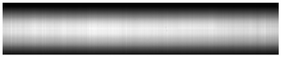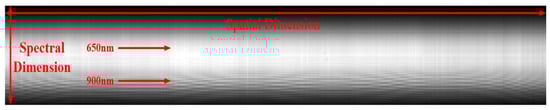 For dispersive hyperspectral VNIR imagers using back-illuminated CCDs, the two dimensions of the CCD are used for spectral and spatial dimensions. They include a long and narrow slit that controls a strip of area being imaged along the cross-track direction. A dispersive hyperspectral VNIR imager captures a single cross-track line at one time for all bands, while the other spatial dimension along the flight direction is obtained through push-broom scanning. Here, the cross-track pixels and wavelength channels are represented as samples and bands, respectively. The number of samples is denoted as N, and the number of bands is denoted as M. We indicate with , for , a set of images (e.g., the sequential series of the frames collected in the along-track direction), each represented by a matrix. For each frame obtained, the expected response value is modulated by fringes, and it can be expressed as: