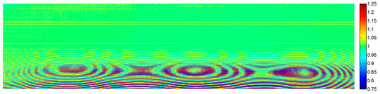For both the calibration data and the ground data collected from Camera 1, during the correction process in Step 1, the widow size L (Equation (3)) takes the value of 4, regularization parameter takes the value of 0.12, and (Equation (8)) in Gaussian kernel function takes the value of 1.5. For the ground data collected from Camera 2, L takes the value of 4, takes the value of 0.3, and takes the value of 3.5. The empirical parameters (L, , and ) are determined by minimizing the spectral fringes of the calibration data acquired in laboratory conditions.