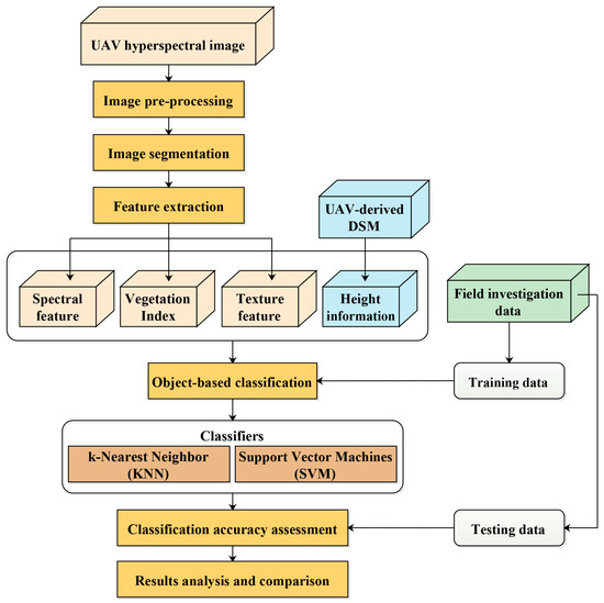 Flowchart for object-based mangrove species classification based on UAV hyperspectral image.