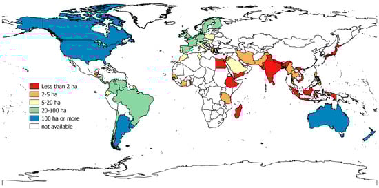 Average size of agricultural holding in 2000 (data adapted from []).