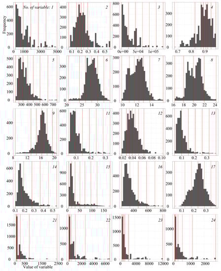 Further, the risk detector computed with a t-test is utilized to explore the spatial distributions of relative risks, which are computed by the difference of average values within sub-regions defined by intervals of a potential variable []. In this study, the average pavement deflections within sub-regions are calculated to reflect the relative conditions of road damage that are linked with the spatial patterns of potential variables. The average pavement deflection within sub-region in risk detector analysis is calculated by:
