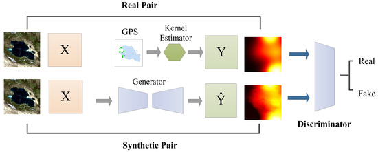 Figure 1. Using the adversarial framework to simulate the kernel-based home range estimator. X is the time-series remote sensing image, and Y is the corresponding home range map. The generator, G, learns the mapping function . The discriminator D tries to classify the real and synthetic data–target pairs. Both G and D are deep convolutional neural networks. - We illustrate our method in a real-world scenario for mapping the home ranges of Bar-headed Geese in Qinghai Lake area. We build a specific dataset for training the mapping model and elaborate each stage in the experiment. Our experience will assist researchers in extending their research scale in various wildlife analyses.