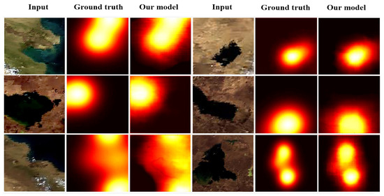 We select six representative test samples which have obvious and differently shaped home ranges, as shown in Figure 7. We observe that the synthesized home range maps from our model successfully, capturing the primary distribution of the real target, even though there still exist some artifacts and noises. This result demonstrates that our model has the ability to implement the mapping between remote sensing imagery and kernel-based home range models.