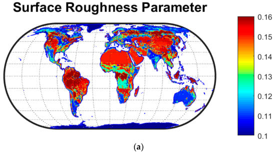Effective surface roughness parameter : It was empirically estimated based on the Moderate Resolution Imaging Spectroradiometer (MODIS) Geosphere-Biosphere Program (IGBP) land cover classes [,]. is an estimation of the factor in the surface reflectivity term in Equation (4). As such, this parameterization provided an improved performance as compared to previous global constant values-based algorithms [], because it incorporated the diversity of the land surface. values for different land cover types are included in the SMAP Tau-Omega parameter look-up table, at a spatial scale of 9 km.