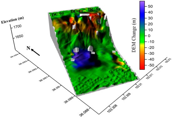 The DEM changes after the Dangchuan No. 4, Dangchuan No. 5 and Dangchuan No. 9 landslides calculated with Sentinel-1A/B SAR data.