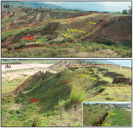 Loess occupies an area of about 630,000 km2, equivalent to approximately 6.6% of the total area of China [1]. This includes the loess plateau, an important base of energy sources and chemical industries, which amounts to approximately 0.4 million km2 in area [2]. Since loess has distinctive physical and mechanical properties—including loose texture, vertical joints, macro-pores, high water sensitivity, and collapsibility—it is prone to geological hazards triggered by earthquakes, rainfall and irrigation [3,4,5]. One third of the geological hazards in China occur in loess plateau, e.g., landslides, collapse, ground fissures and erosion and collapsible settlement [1,6]. Over the past few decades, these geological hazards have caused enormous numbers of casualties and economic losses, such as the destruction of civil houses and factories, the destruction of major transport trunk lines, damage to oil and gas routes and the reduction of cultivated lands [7,8]. Loess landslides, one of the severe geological hazards in loess plateau, have the special characteristics of high speed, a small spatial scale, long runout distance, group occurrence, and recurrence [2,9].