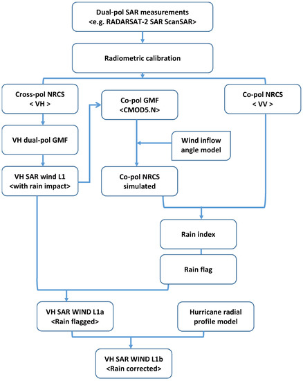 Flowchart of the hurricane wind quality index from SAR with proposed rain correction procedure.