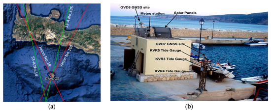 - Mertikas, S.; Donlon, C.; Féménias, P.; Mavrocordatos, C.; Galanakis, D.; Tripolitsiotis, A.; Frantzis, X.; Tziavos, I.N.; Vergos, G.; Andersen, O.B.; et al. Fifteen years of Cal/Val service to reference altimetry missions: Calibration of satellite altimetry at the Permanent Facilities in Gavdos and Crete, Greece. Remote Sens. 2018, 10, 1557. [Google Scholar] [CrossRef]