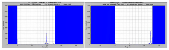 Absolute range calibration of altimeters using transponders have been carried out for Envisat [14], Jason-2 [15], CryoSat-2 [16], and Jason-3 [17]. Sentinel-3A transponder calibration results have been presented in [17,18] using the transponder operating at the CDN1 Cal/Val site in West Crete. The technical characteristics of this transponder instrument have been presented elsewhere [8].
