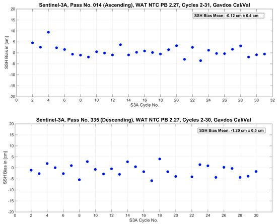The bias per cycle for each Sentinel-3A Pass No.14 and Pass No.335 is thus determined.