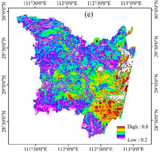 Combining the natural environment, main vegetation types in the study area, and the land-use/-cover data acquired from the National Earth System Science Data Sharing Infrastructure (http://www.geodata.cn) [85], land cover was classified into eight types: water, double-cropping rice, single-season rice, grassland, dryland, forest, building, and other land.