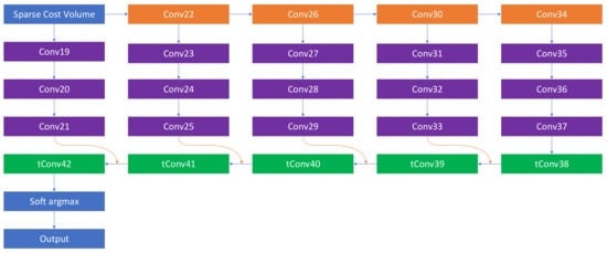 - Khamis, S.; Fanello, S.; Rhemann, C.; Kowdle, A.; Valentin, J.; Izadi, S. StereoNet: Guided Hierarchical Refinement for Real-Time Edge-Aware Depth Prediction. In Proceedings of the European Conference on Computer Vision (ECCV), Munich, Germany, 8–14 September 2018; pp. 573–590. [Google Scholar]