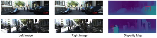 - Geiger, A.; Roser, M.; Urtasun, R. Efficient large-scale stereo matching. In Computer Vision–ACCV 2010; Springer: Berlin, Germany, 2010; pp. 25–38. [Google Scholar]