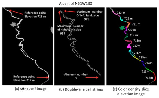 Figure 9c shows the final color density slice image of the newly defined stepwise river segments.