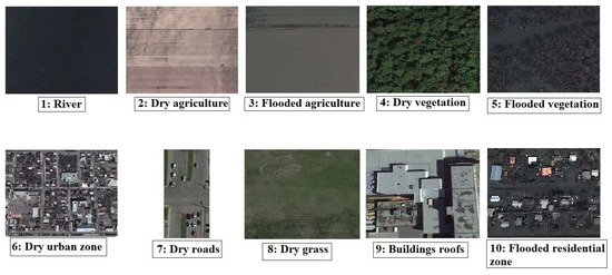 - Dry grass: mainly represents grass (e.g., in public parks or house gardens) that was not affected by flood water.