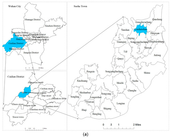 We used a rural area around Wuhan City as the study area (Figure 1a), which has different LULC types, such as homestead, water, farmland, road, trees, and low vegetation. The Vaihingen datasets for the 2D semantic labeling contest was organized by the International Society for Photogrammetry and Remote Sensing (ISPRS) Commission III.4. There are six class types in the Vaihingen datasets: buildings, cars, low vegetation, trees, impervious surfaces, and background. Compared with the Vaihingen datasets, there are four class types in the LULC classification dataset in rural areas of Wuhan city: homestead, impervious surfaces, trees, and background, which contains farmland, low vegetation, and water. Each map from Figure 1b–d contains 8801 9007 pixels. In order to validate the classifier using a much larger pool of validation points and for supervised learning and fine-tuning, each pixel in the full map was manually labeled. Figure 1b,c show the high-resolution remote sensing image and DSM, respectively, which were used to manually classify the map, and Figure 1d shows the finished labeled map.
