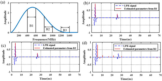 Figure 2 shows the results of parameter estimation in different bandwidth subsets. The estimated amplitudes and time delays are listed in Table 4. The relative error between the estimated value and the simulated value (Table 2) is defined as err_rel (%).
