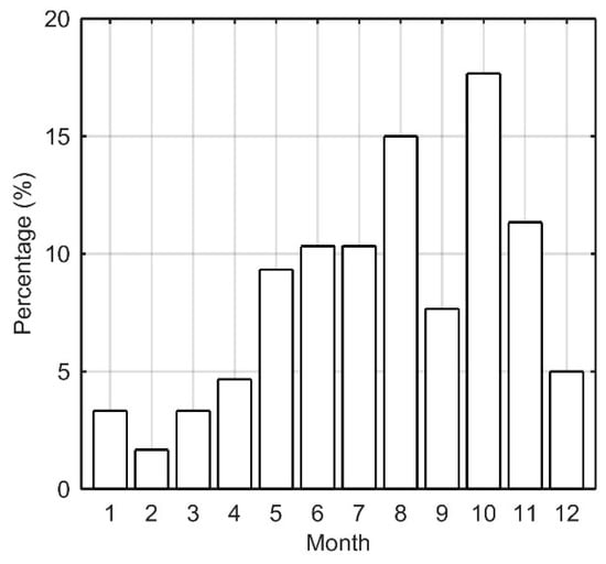 Distribution of months of the collocated data used in this study.