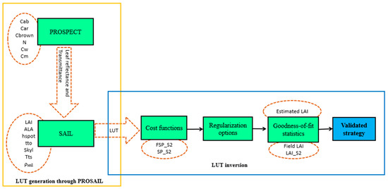Figure 4 presents the scheme of the LUT generation and the inversion process for LAI retrieval.