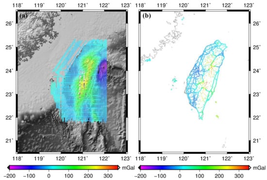 3.1.2. Real Airborne Gravity Data in Taiwan