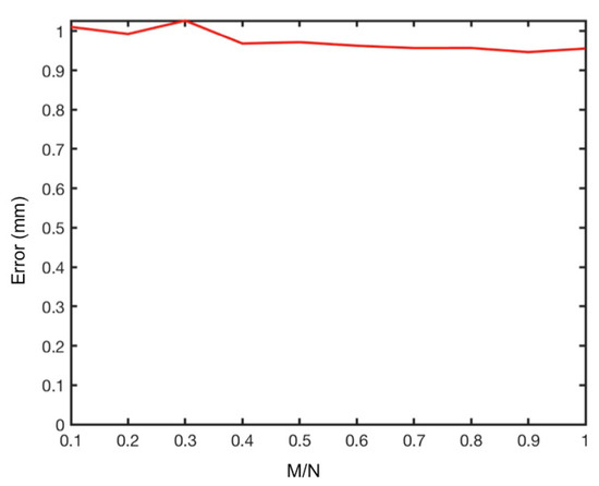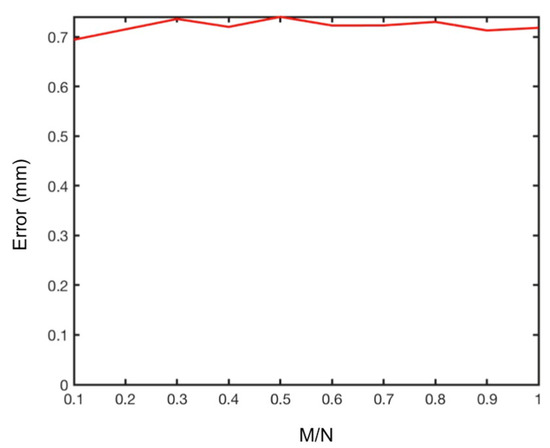 Displacement error in function of M/N for a stable point in the test site “Campus”.