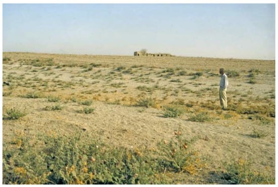 The environmental context in which irrigated agriculture was developed in Northern Mesopotamia is significant. Rain-fed cultivation (roughly, where rainfall is at least 200–250 mm on average per year, see Reference [18]) is technically possible in the north, meaning that irrigation is not necessary for successful agriculture, although precipitation is variable, making reliance on it risky. Northern Mesopotamia receives sufficient rainfall for the growth of vegetation in non-irrigated areas, although the steppe is sparsely vegetated. However, irrigable areas with perennial water sources are as attractive to present-day cultivators as they were in the past, so land cover in these zones tends to be intensive arable cultivation of crops including wheat, cotton, and fruit [19]. The rain-fed north is in contrast to southern Iraq, which Wittfogel [20] used to illustrate his theory of “oriental despotism”. He proposed that the development of irrigation in southern Iraq led to a need for bureaucracy, which in turn drove the development of the state [20]. Ancient Mesopotamian irrigation was traditionally viewed in the context of this theory and this much drier region, where rain-fed cultivation was not possible. Salinization as a result of irrigation may also have been a particular problem in the south [21].Throughout Mesopotamia, soil has been degraded due to human activity [22]. Principally, however, the only soils really suitable for arable cultivation are the moisture-retaining alluvial river valleys [23].