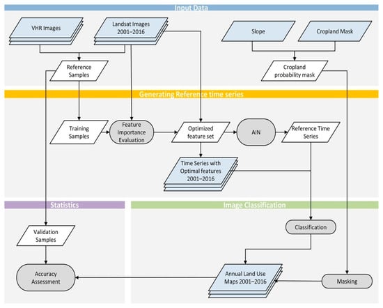 General flowchart to create annual cropland maps. VHR, very high resolution images, AIN, artificial immune network.