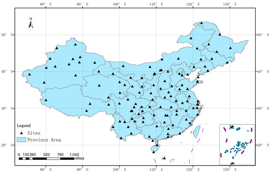 Spatial distribution of the radiation sites provided by the China Meteorological Administration (CMA) Meteorological Information Center.