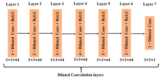 In the proposed SAR-DRN model, considering that trade-off between feature extraction ability and reducing training time, the dilation factors of the 3 × 3 dilated convolutions from layer 1 to layer 7 are respectively set to 1, 2, 3, 4, 3, 2, and 1, empirically. Compared with other deep neural networks, we propose a lightweight model with only seven dilated convolution layers, as shown in Figure 3.
