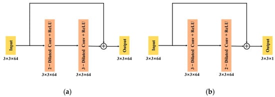 Diagram of skip connection structure in the proposed model. (a) Connecting dilated convolution layer 1 to dilated convolution layer 3. (b) Dilated convolution layer 4 to dilated convolution layer 7.